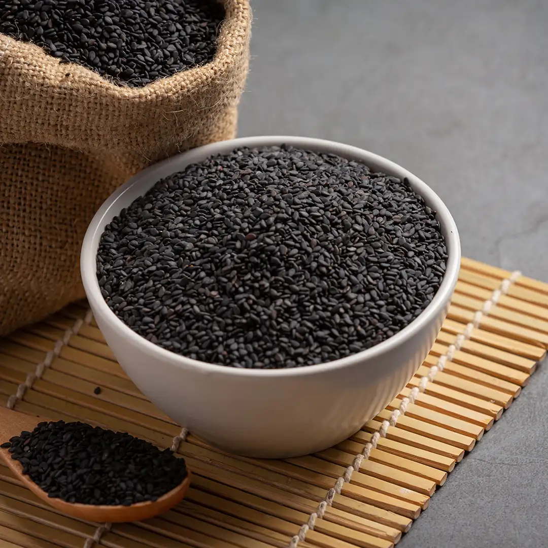 We are pleased to offer 100% organic black whole sesame seeds, sourced from the best organic farms and grown without the use of pesticides, chemicals, or synthetic fertilizers. Our black sesame seeds are raw and unprocessed, ensuring they retain all of their natural flavor, nutrients, and health benefits.